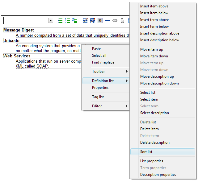XStandard is the only editor that supports authoring of defintion lists.